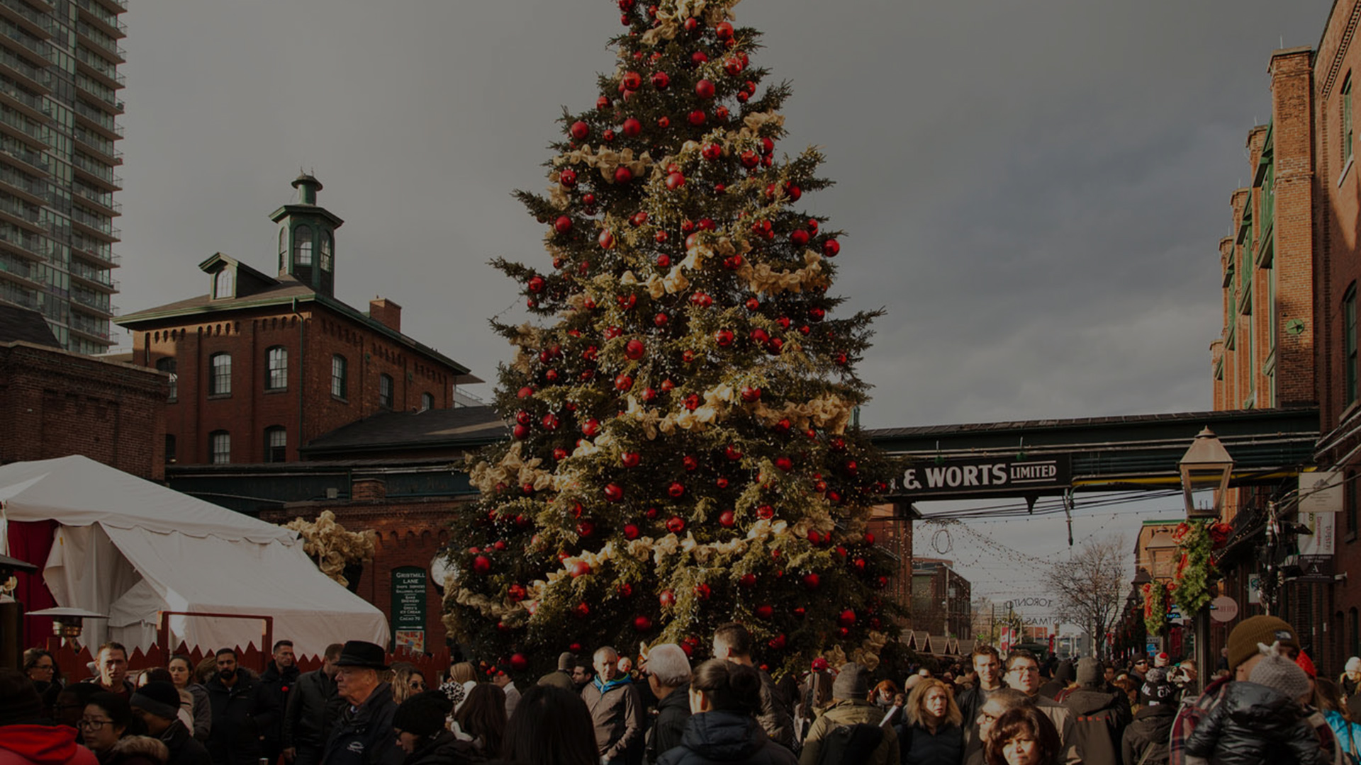 The Toronto Christmas Market takes place in the Distillery Historic District: 55 Mill Street, Toronto, ON M5A 3C4